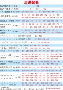 抽選券をフロントスタッフにご提示いただくとその場で景品と交換いたしますので