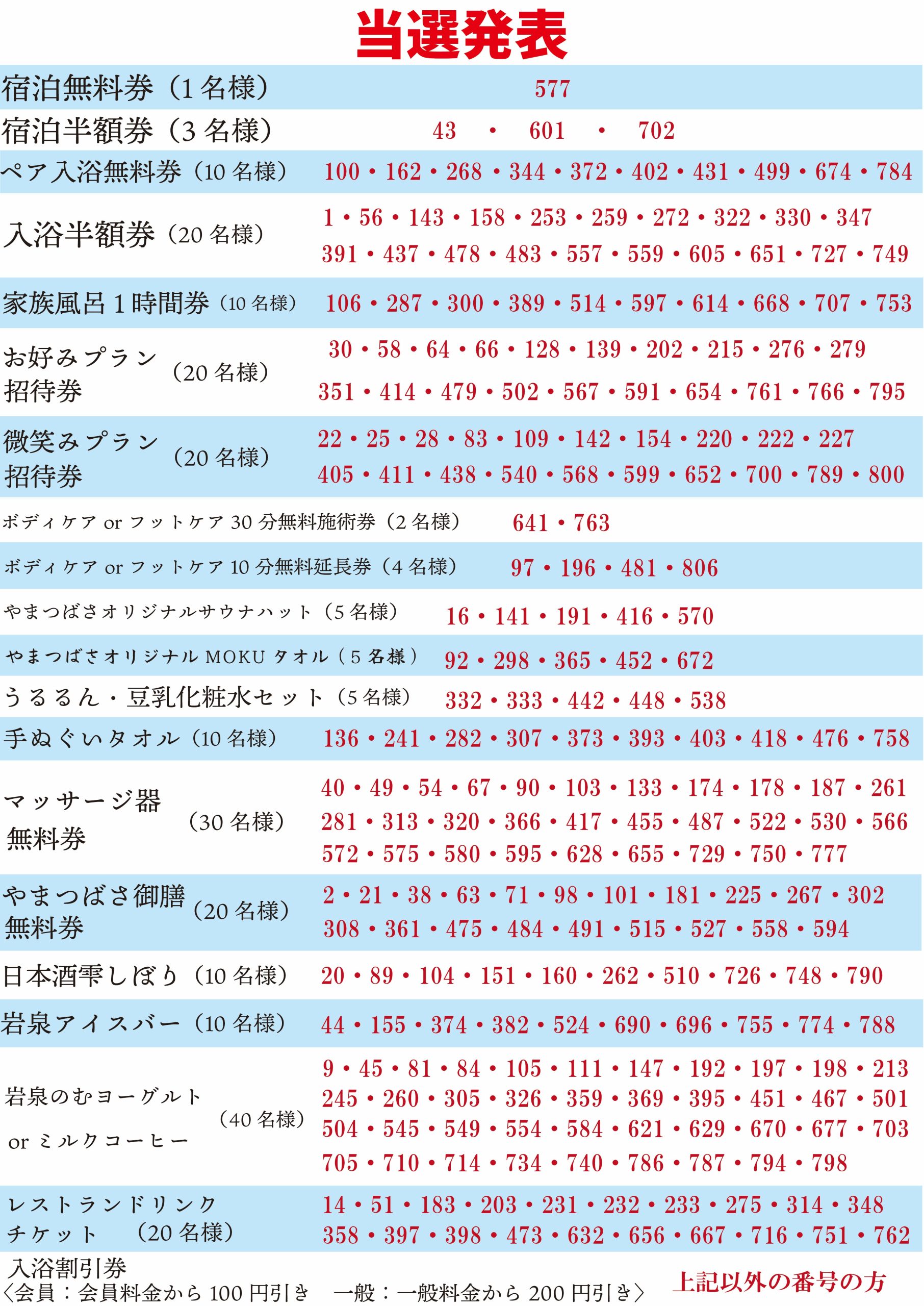 「温泉総選挙×やまつばさ応援キャンペーン」の8月の当選者の方の景品の引き換え期限が9月30日(土)となっております!!