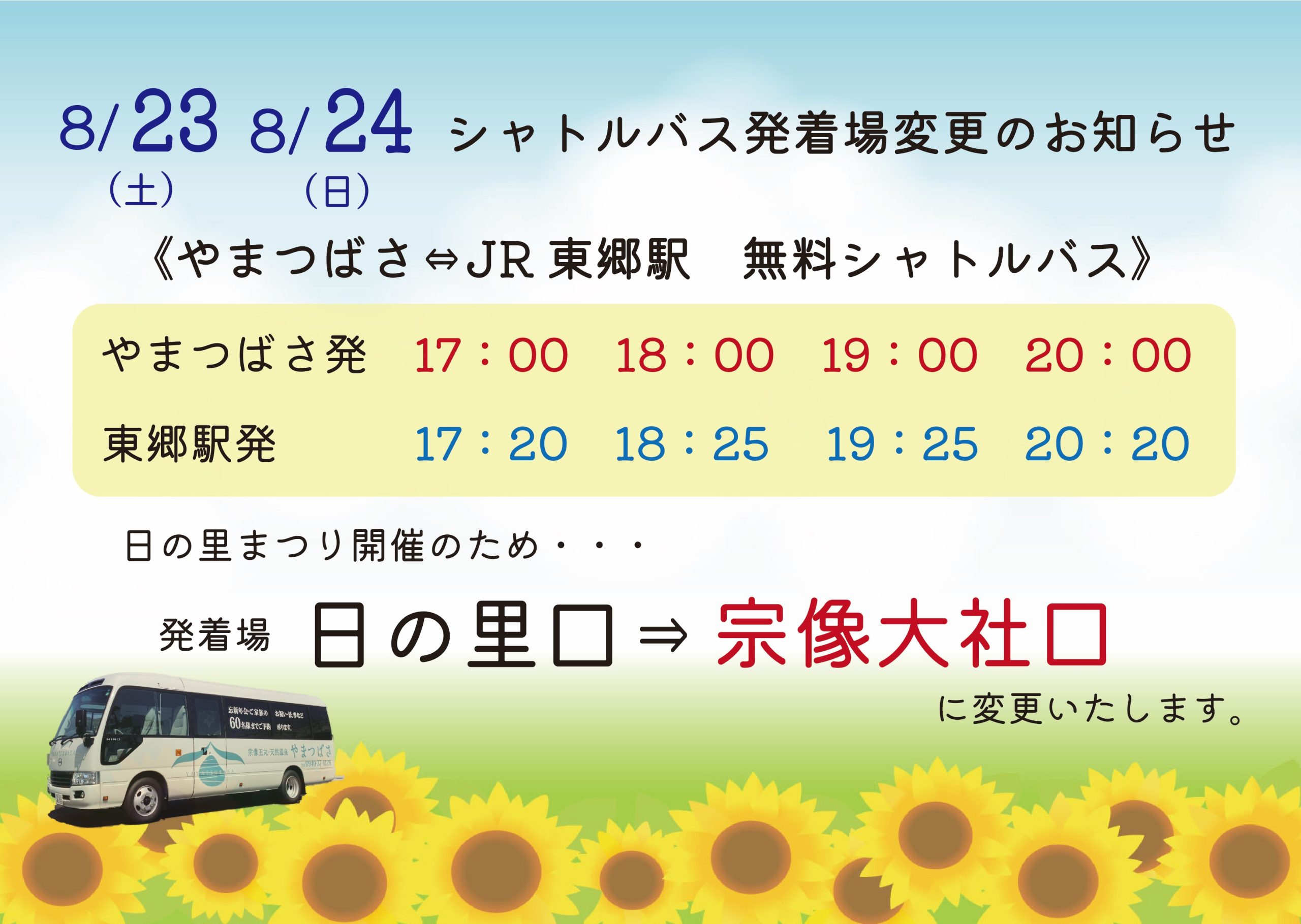 8月23日(土)・24日(日)にシャトルバスをご利用のお客様は、どうぞお間違えのないようご注意くださいませ。