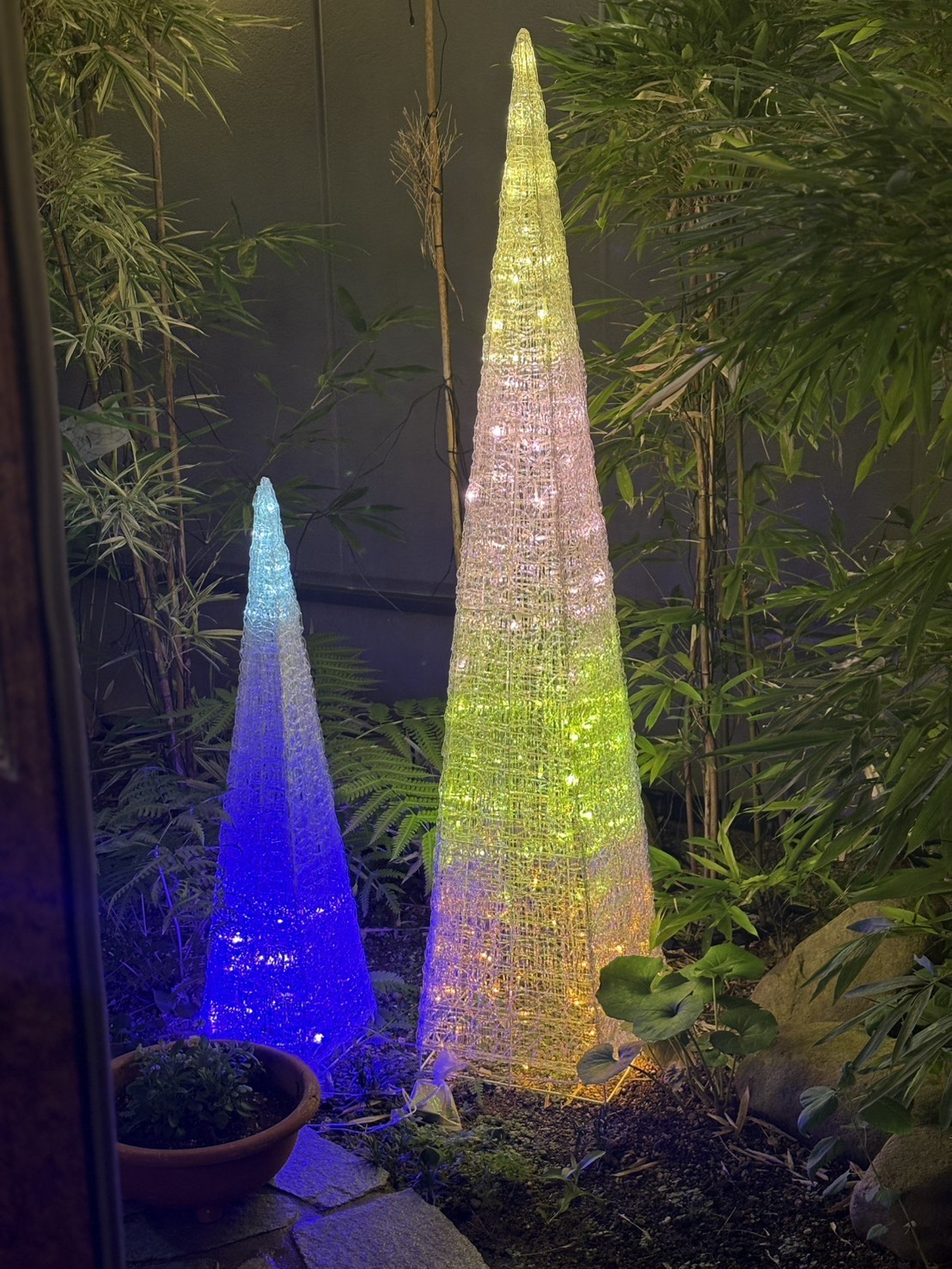 家族風呂の庭にイルミネーションを設置しました
